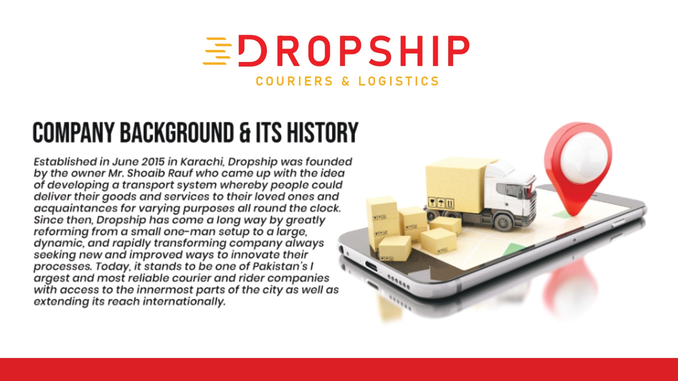 Established in June 2015 in Karachi, Dropship was founded by the owner Mr. Shoaib Rauf who came up with the idea of developing a transport system whereby people could deliver their goods and services to their loved ones and acquaintances for varying purposes all round the clock. Since then, Dropship has come a long way by greatly reforming from a small one man setup to a large, dynamic and rapidly transforming company always seeking for new and improved ways to innovate their processes. Today, it stands to be one of Pakistan’s largest and most reliable courier and rider companies with access to the innermost parts of the city as well as extending its reach internationally.